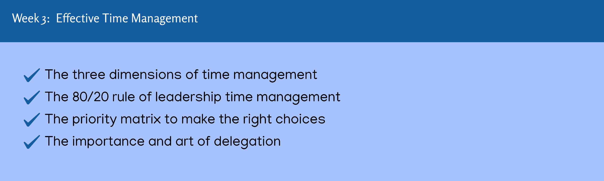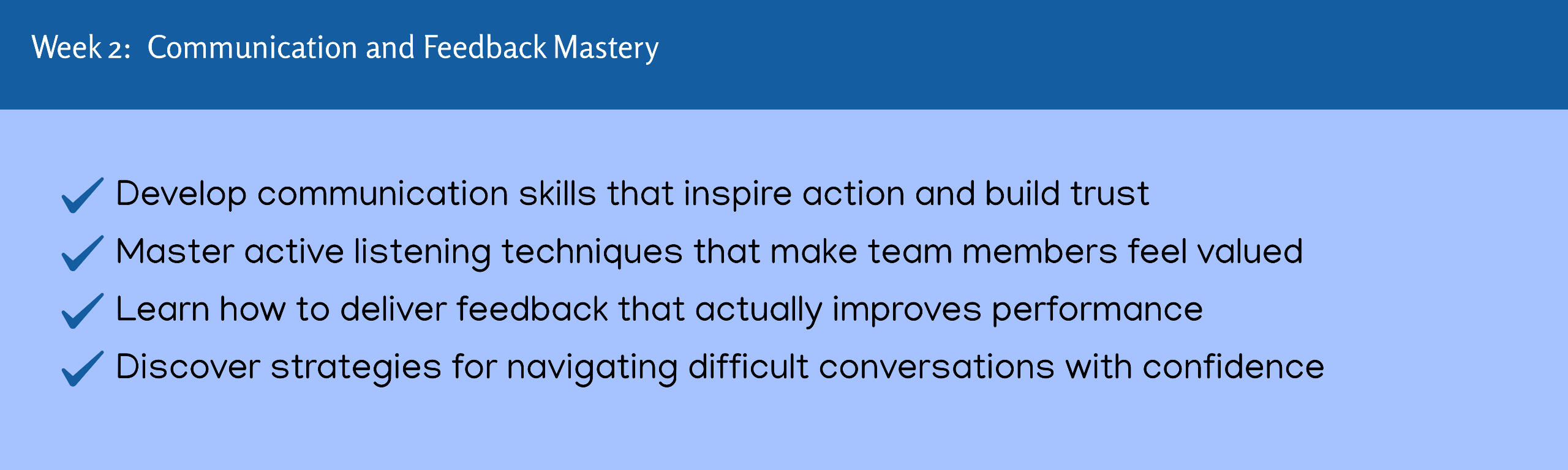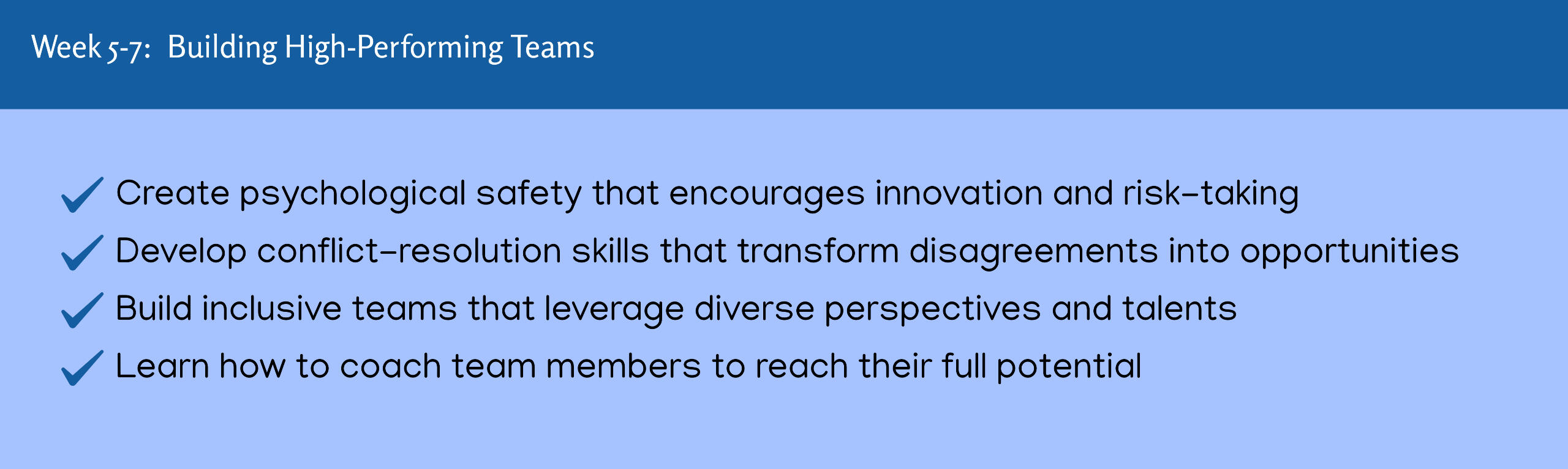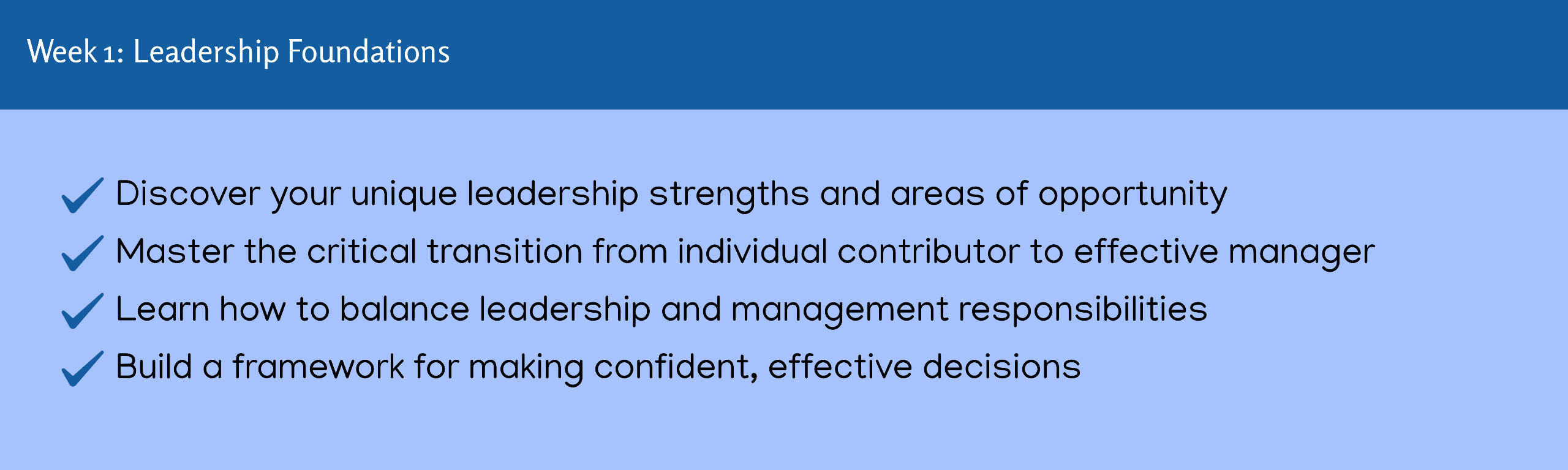 By focusing on one concept at a time and giving you space to implement what you learn, you'll develop deeper, more lasting leadership skills than traditional programs that overwhelm you with information.